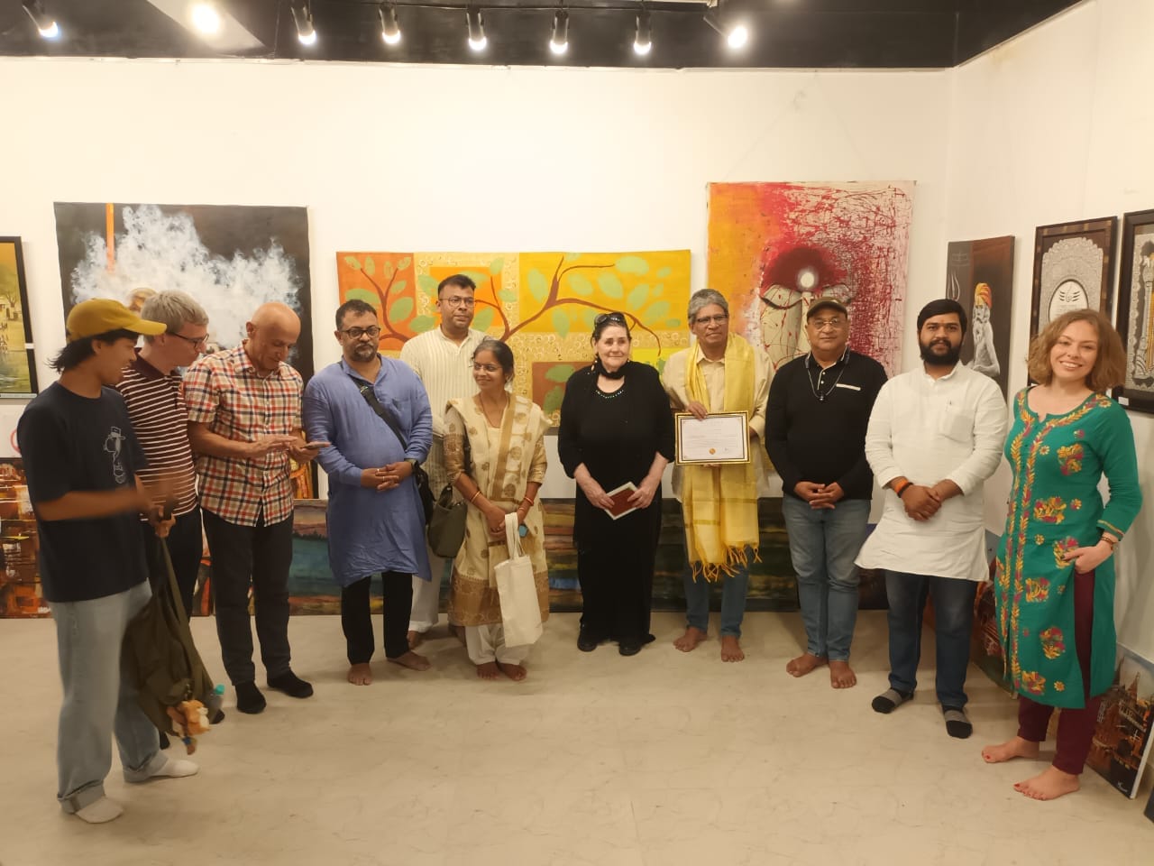 This certificate is awarded to Mr. Suresh K. Nair in recognition of his exceptional contributions to the world of art and culture, and his unwavering commitment to fostering peace and social harmony through his artistic endeavors. His visionary public art project, “Wall of Peace,”has been instrumental in promoting the values of unity and coexistence, reflecting the profound impact of art on society. With a career rooted in tradition and enriched by international influences, Mr. Nair’s dedication to preserving cultural heritage while pushing the boundaries of contemporary art is truly commendable. His work stands as an inspiration to artists and peace advocates around the world. Helma Ritscher, Chairwoman of the Indo-German Society of Remscheid, Germany presented ths prestigious award to the Mr. Nair. The event was graced by Dr. Lenin Raghuvanshi, Founder and Convenor of PVCHR; Prof. Chawky Frenn, Associate Professor at George Mason University and Fulbright Scholar at Banaras Hindu University, Smt. Shruti Nagvanshi, Shri. Direndra Sisodia, Shri. Amit Kumar founder of Mehta Art Gallery and other eminent dignitaries at Mehta Art Gallery, Varanasi, Uttar Pradesh, India.